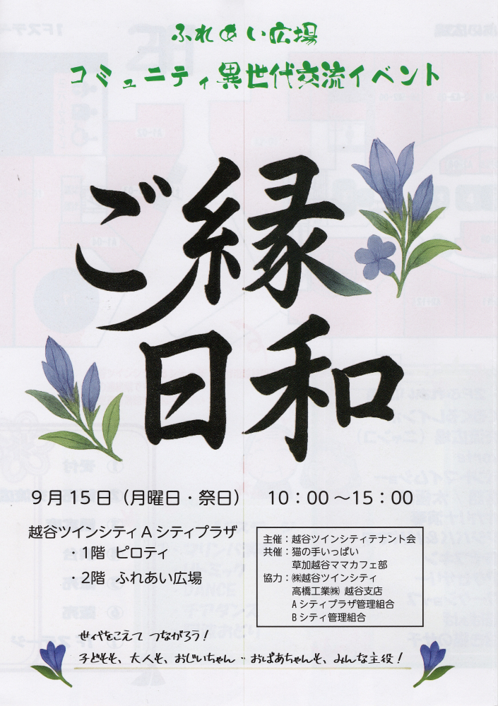 越谷駅前 ツインシティ・Aシティで開催される【異世代交流「ご縁日和」イベント】を、どんじゃら・ほいも サポートさせていただきます! |