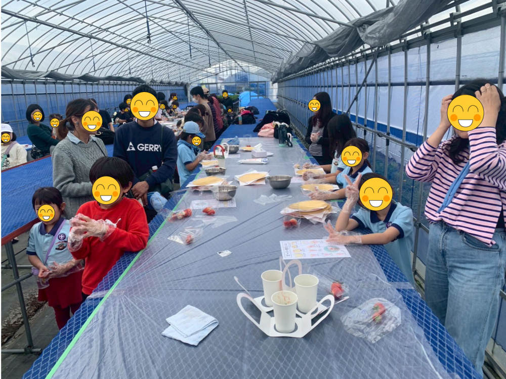 このプログラムは、「 ①食材の大切さを学ぶ、②正しく食材を選ぶ力を育む、③食材や料理への興味関心を育てる & みんなで食事をする楽しさを経験する」 とし、それぞれに対応する形で、①いちご生産者のお話を聞く 、②いちご狩り、③いちごを使ってデザートを作る と3つのプログラムで構成しました。