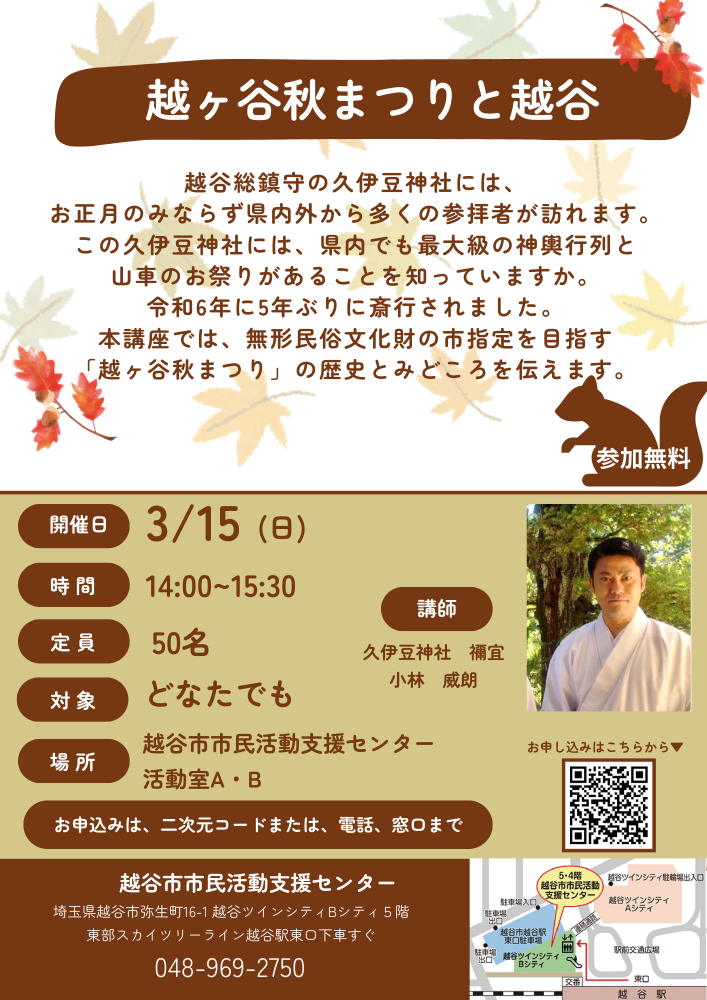 【講座】越ケ谷秋まつりと越谷 ご予約受付中です!